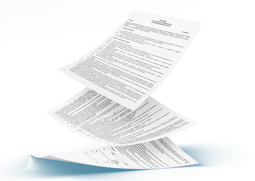Работаем по договору, оплата происходит в два этапа, первые 50% оплачиваются при подписании договора на первой съёмке, вторая часть оплачивается при получении альбомов!