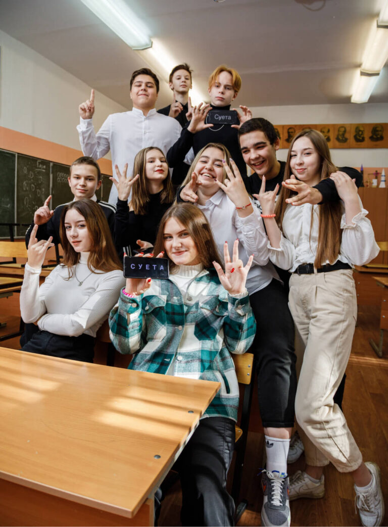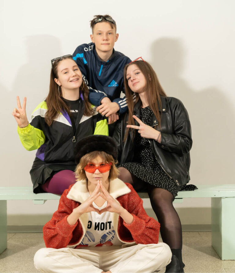 В старшей школе портретную часть лучше начинать с последних уроков, не прерывая учебный процесс, далее на групповой фотосессии должны участвовать все, кто заказал альбом, предварительно освободившись от дополнительных занятий и других важных дел примерно на 1,5 часа после конца уроков.