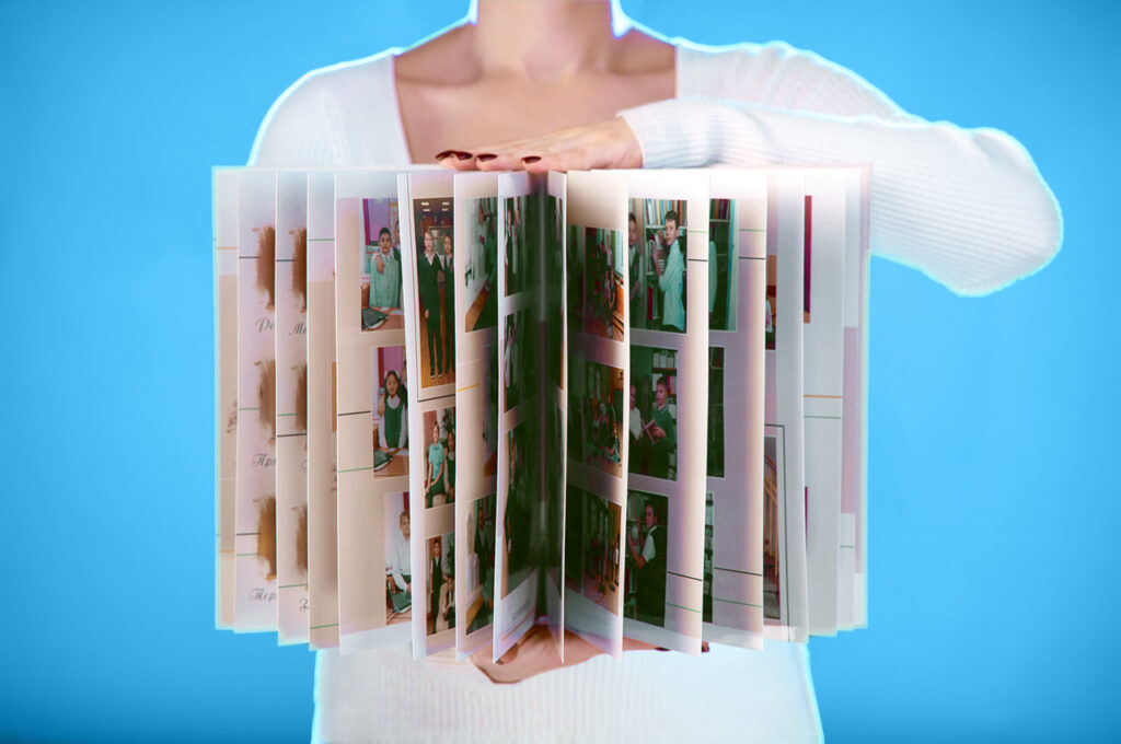Простой и практичный вариант выпускного фотоальбома, представляет собой папку, оформленную со всех сторон и раскладывающуюся